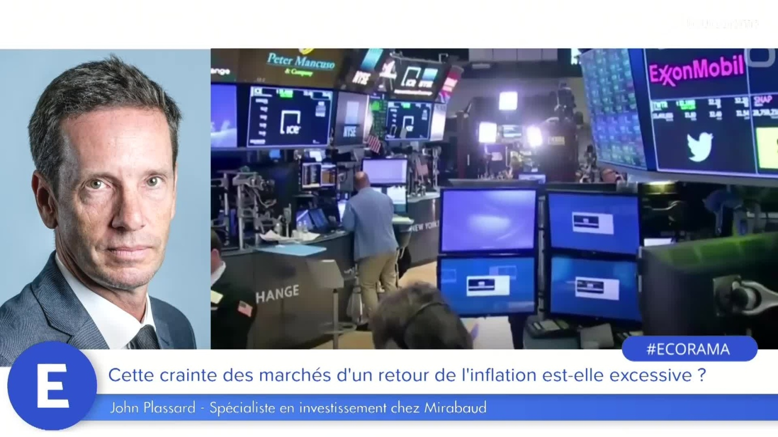 Les craintes liées au retour de l'inflation rendent les marchés volatiles ces derniers jours. Un stress compréhensible selon John Plassard, spécialiste en investissement chez Mirabaud. Ecorama du 12 mai 2021, présenté par David Jacquot sur Boursorama.com