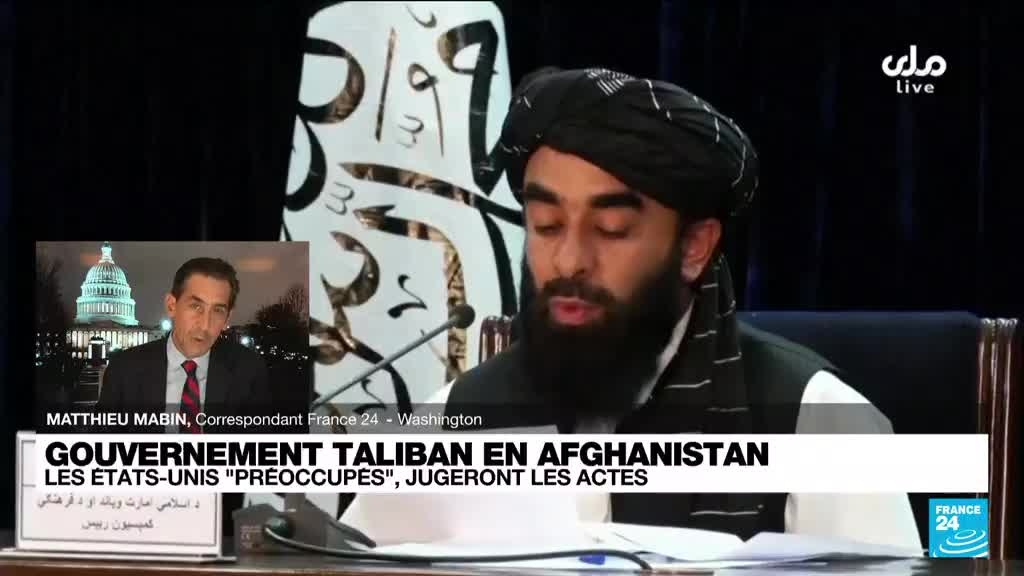 Les Etats-Unis se sont déclarés "préoccupés" mardi par la nomination de certains ministres talibans en Afghanistan, mais se sont déclarés prêts à juger le gouvernement "sur ses actes", et notamment sur sa disposition ou non à laisser les Afghans quitter le pays. Les précisions de Matthieu Mabin, correspondant France 24 à Washington.