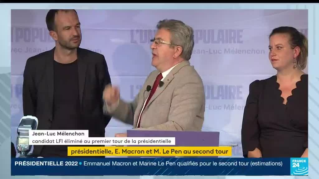 Au terme d'une campagne atone et largement éclipsée par la guerre en Ukraine, Emmanuel Macron et Marine Le Pen se sont qualifiés pour le second tour, selon l'estimation Ipsos-Sopra Steria pour France 24. Jean-Luc Mélenchon arrive en troisième position avec 22,2 % des suffrages.