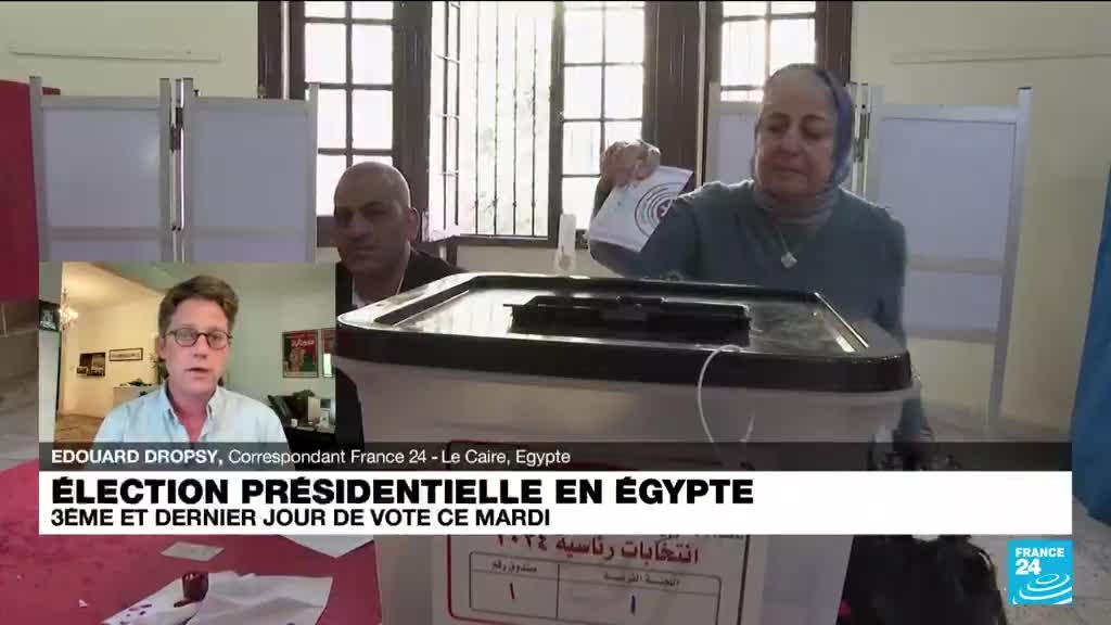 Les Égyptiens sont appelés aux urnes, ils ont jusqu'à aujourd'hui, mardi 12 décembre, pour élire leur président. L'issue de ce scrutin étalé sur trois jours ne fait aucun doute : le maréchal Abdel Fattah al Sissi sera reconduit dans ses fonctions à la tête du pays. Il a écarté les rares candidats capables de lui faire un peu d'ombre et a verrouillé toute forme possible d'opposition. Les précisions d'Edouard Dropsy, correspondant de France 24 au Caire.