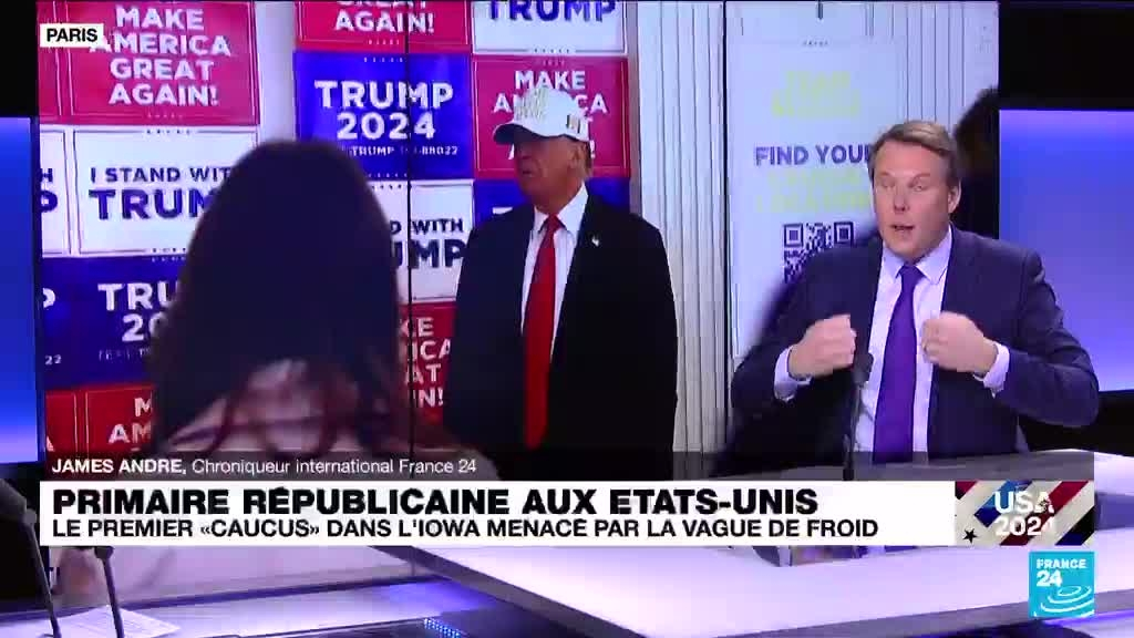Le grand bal des primaires américaines s'ouvre lundi dans l'Iowa, où Donald Trump pourrait d'entrée écraser toute concurrence chez les républicains, à moins que ses rivaux Nikki Haley et Ron DeSantis ne créent la surprise, aidés potentiellement par une météo épouvantable. Les précisions de James André, chroniqueur international à France 24.