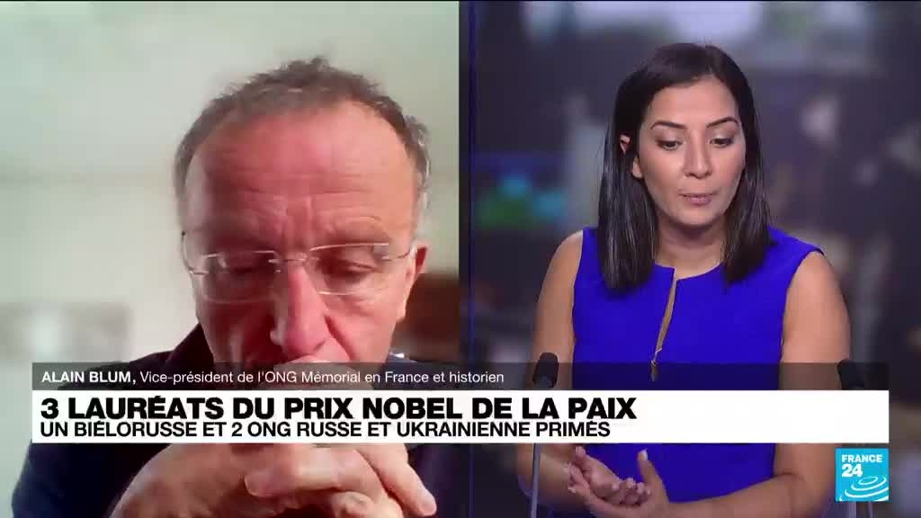 Le prestigieux prix a été conjointement attribué au militant bélarusse Ales Beliatski, en prison dans son pays, à l'ONG russe Memorial - frappée par un ordre de dissolution - et au Centre ukrainien pour les libertés civiles qui s'emploie à documenter les "crimes de guerre russes" dans le conflit en cours. Alain Blum, historien et vice-président de l'ONG Memorial en France, était l'invité de France 24 pour réagir sur le sujet.
