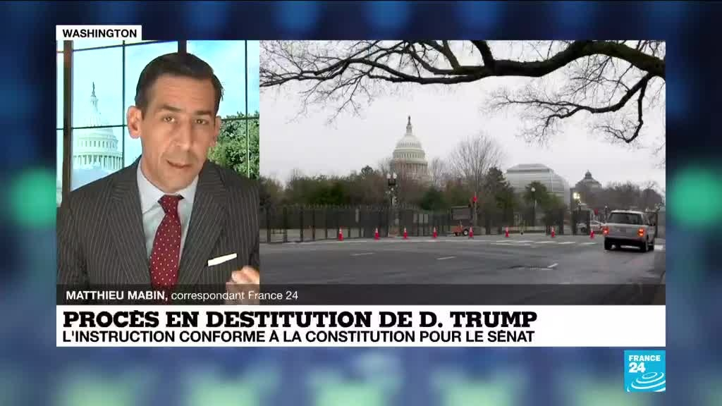 Une majorité de sénateurs américains (56 contre 44) ont voté, mardi 9 février, pour que se déroule dans son intégralité le procès en destitution contre l'ancien président républicain Donald Trump, en soutenant l'argument présenté par les démocrates selon lesquels la Constitution autorise une telle procédure. Les précisions de Matthieu Mabin, correspondant France 24 à Washington.