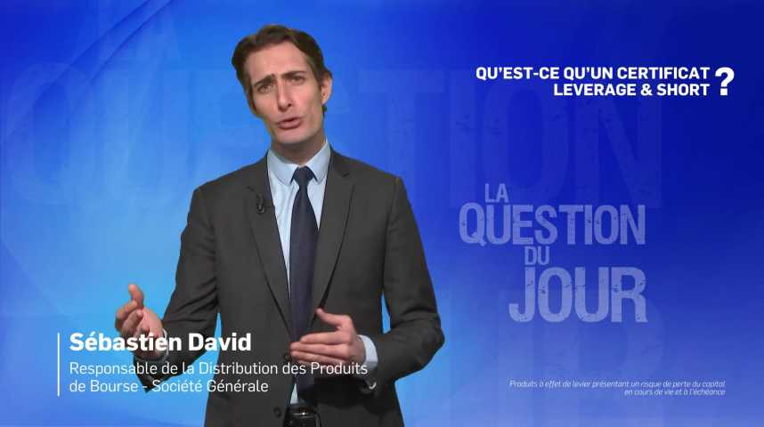 Les Certificats Leverage and Short sont des produits de Bourse qui font partie de la gamme des produits à effet de levier proposé par Société Générale. Ces produits qui s’adressent à des investisseurs avertis répliquent les variations quotidiennes du sous-jacent, à la hausse comme à la baisse, avec un levier fixe de x3 à x15. Ceci peut avoir un effet favorable ou défavorable pour l’investisseur. La stratégie est renouvelée chaque jour et systématiquement. Les Certificats Leverage permettent aux investisseurs de profiter de la hausse du sous-jacent, tandis que les Certificats Short permettent de bénéficier de la baisse du sous-jacent.