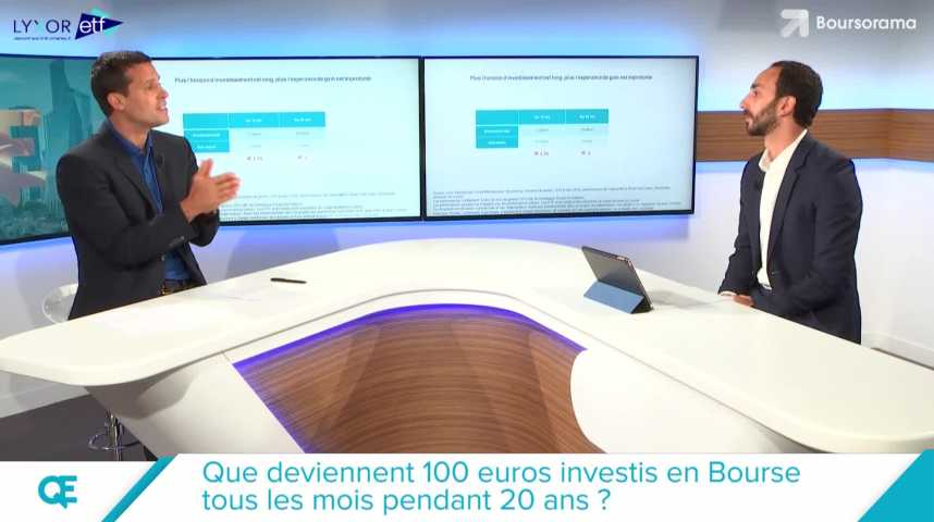 Historiquement, 100 euros investis mensuellement sur l'indice MSCI World dividendes réinvestis ont permis d'accumuler près de 75.000 euros au bout de 20ans. Comment arrive-t-on à capitaliser une telle somme? Les explications avec Jeremy Tubiana, Responsable distribution France Lyxor ETF. QE, l'émission qui augmente votre Quotient Economique sur Boursorama.