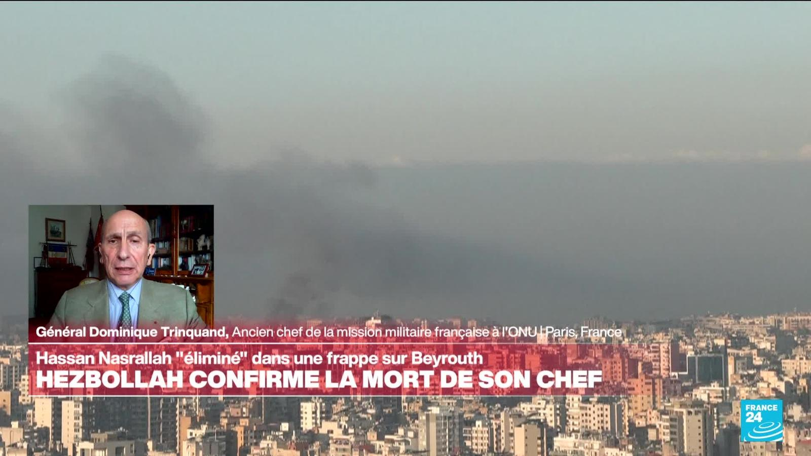 L'armée israélienne a annoncé samedi avoir tué le chef du Hezbollah, Hassan Nasrallah, lors d'une frappe aérienne vendredi sur le quartier général du mouvement libanais dans la banlieue sud de Beyrouth. Quelle est la stratégie militaire d'Israël ? Nina Masson a posé la question au Général Dominique Trinquand, ancien chef de la mission militaire française à l'ONU.