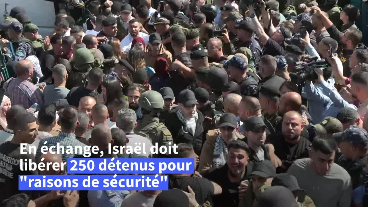 Des bus transportant des prisonniers palestiniens libérés par Israël ont été accueillis lundi par une foule en liesse à Ramallah, en Cisjordanie occupée.