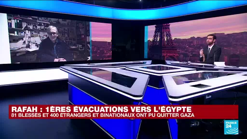 Les premières évacuations de Palestiniens, d’étrangers et de binationaux vers l’Egypte ont eu lieu ce mercredi 1er novembre via le terminal de Rafah, au sud de l’enclave. Que vont devenir ces Palestiniens en dehors de la bande de Gaza ? Comment organiser l‘accès des secours ? Pour Rony Brauman, co-fondateur et ancien président de Médecins sans frontières, invité de France 24, "Le problème étant pour nous de traverser dans l’autre sens, car l’évacuation d’une partie de l’équipe qui n’était pas une équipe de guerre s’est bien déroulée, maintenant il s’agit de faire rentrer une équipe pour faire de la médecine et chirurgie de guerre. Nous avons 25 tonnes de fournitures qui attendent de traverser la frontière dans l’autre sens et ça c’est une autre paire de manche, pour l’instant je ne suis pas en mesure de vous dire ce qu’il va se passer."