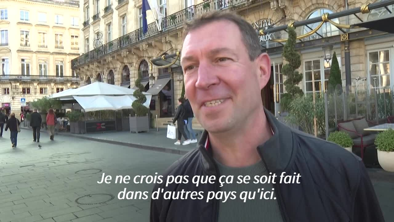 Réactions à Bordeaux après la remise en liberté de Nicolas Sarkozy information fournie par AFP Video 11/11/2025 à 12:19
