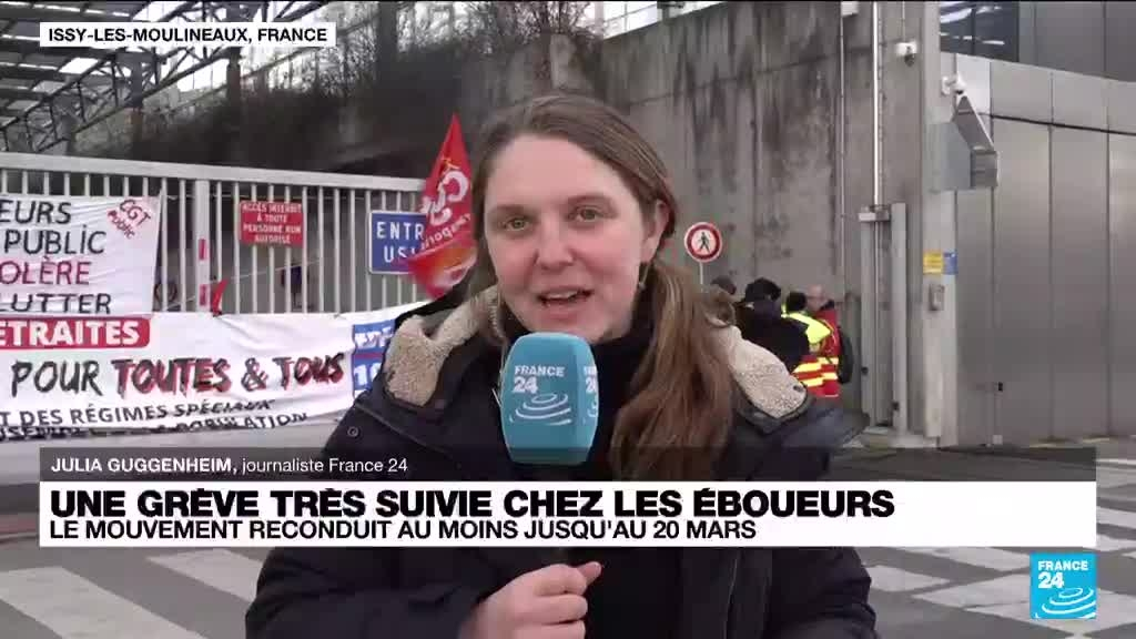 Réforme des retraites : mobilisation des éboueurs devant le centre d'incinération d'Issy-les-Moulineaux information fournie par France 24 15/03/2023 à 12:32