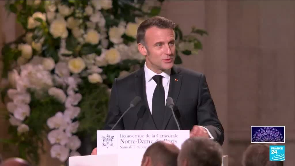 Le président français Emmanuel Macron a pris la parole samedi 7 décembre lors de la cérémonie de réouverture de la cathédrale Notre-Dame de Paris.