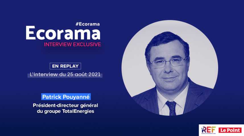 Entretien exclusif avec Patrick Pouyanné, Président-directeur général de TotalEnergies , enregistré lors de la REF du MEDEF à l'Hippodrome de Longchamp. Ecorama du 25 août 2021, présenté par David Jacquot et Marc Vignaud, journaliste au Point, sur Boursorama.com