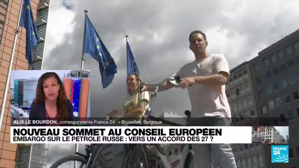 Les représentants des Vingt-Sept examinaient dimanche une solution pour tenter de lever le blocage sur leur 6e paquet de sanctions contre Moscou, qui achoppe sur un projet d'embargo progressif sur le pétrole russe, afin de ne pas parasiter le sommet européen de ce lundi 30 mai à Bruxelles. Les explications d'Alix Le Bourdon, correspondante de France 24 à Bruxelles.