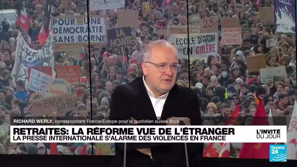 Richard Werly, journaliste, sur la réforme des retraites : "On ne voit pas la sortie de crise" information fournie par France 24 27/03/2023 à 11:19