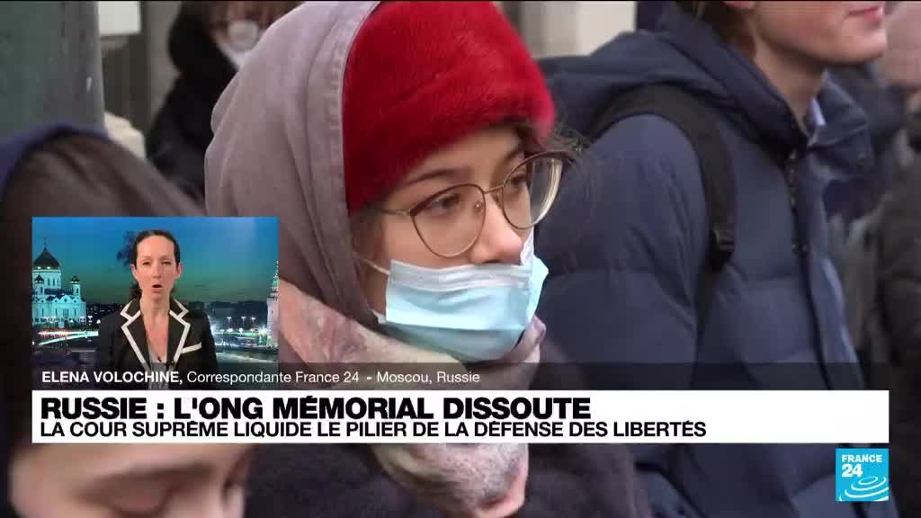 La Cour suprême russe a ordonné mardi la dissolution de l'ONG Mémorial, pilier de la défense de la lutte contre les répressions dans la Russie contemporaine et gardien de la mémoire des victimes du Goulag. Les précisions d'Elena Volochine, correspondante FRANCE 24 à Moscou.