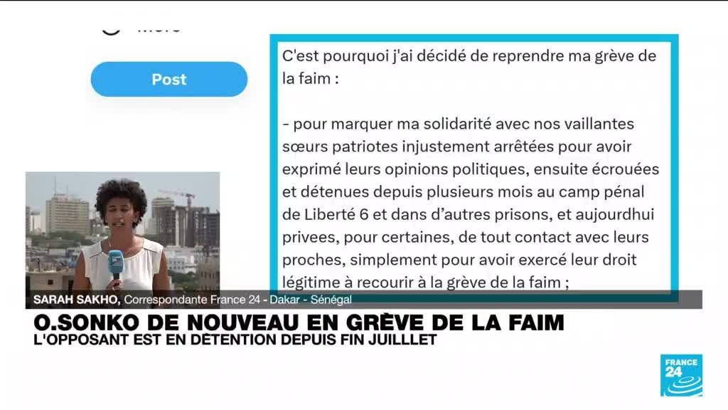 Sénégal : Ousmane Sonko reprend sa grève de la faim information fournie par France 24 19/10/2023 à 17:26