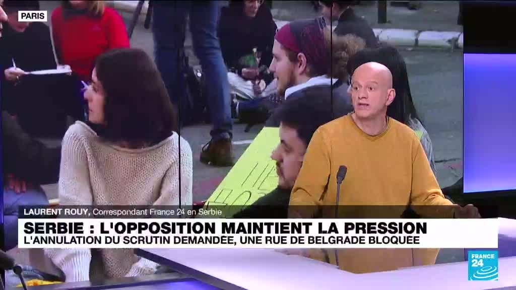 Depuis les élections du 17 décembre en Serbie, les manifestations pour demander l'annulation du scrutin se poursuivent. L'opposition, qui accuse la droite au pouvoir, sortie vainqueur du vote, de manipulations du processus électoral, maintient la pression. Des étudiants organisent le blocage de rues de Belgrade, ce vendredi 29 décembre, comme l'explique Laurent Rouy, correspondant de France 24 en Serbie.