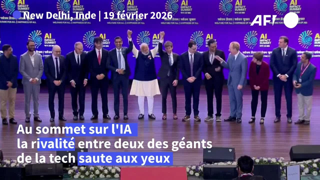 Sommet de l'IA : les rivaux américains de la tech gardent leurs distances sur la photo information fournie par AFP Video 19/02/2026 à 15:09