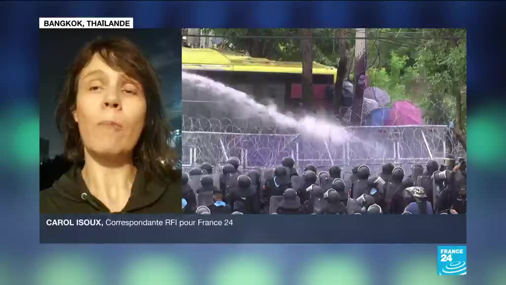 La police a fait usage mardi à Bangkok de canons à eau et de gaz lacrymogène contre des manifestants qui tentaient de se rapprocher du Parlement, où députés et sénateurs débattent d'une éventuelle réforme de la Constitution réclamée par le mouvement pro-démocratie. Le point avec Carol Isoux, correspondante RFI pour France 24