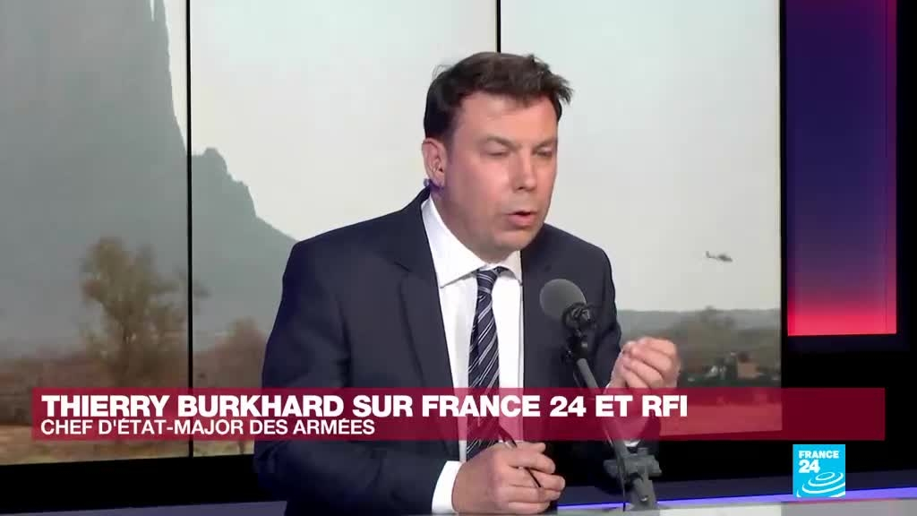 Le général Thierry Burkhard, chef d'état-major des armées, a répondu aux questions d'Armelle Charrier (France 24) et de Franck Alexandre (RFI). Dans cet entretien exclusif, il évoque la préparation de la France en cas de conflit de haute intensité et le déploiement de soldats français en Roumanie dans le cadre de l'Otan. Il revient également sur la fin de l'opération Barkhane au Mali et affirme que "la guerre contre le terrorisme ne peut être gagnée que par les armées africaines".
