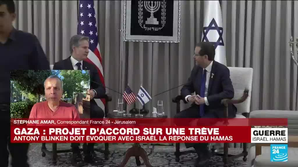 Le chef de la diplomatie américaine a indiqué mercredi espérer un accord sur les otages détenus dans la bande de Gaza mais souligné qu'il restait "beaucoup de travail" pour y parvenir, après des entretiens avec les dirigeants israéliens à Jérusalem. Les précisions de Stéphane Amar depuis Jérusalem pour France 24.