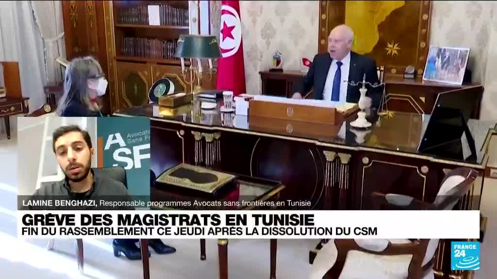 Après avoir suspendu le Parlement élu et limogé le gouvernement en juillet, le président tunisien Saied a dissous le Conseil Supérieur de la Magistrature, une instance indépendante créée en 2016 pour nommer les juges, qu'il accuse de "partialité" et d'être sous l'influence du parti islamo-conservateur Ennahdha. Les magistrats sont en grève depuis 2 jours pour protester, et cela traduit un malaise politique bien plus profond, comme l'expliquait Lamine Benghazi, responsable des programmes chez Avocats sans frontière à France 24.