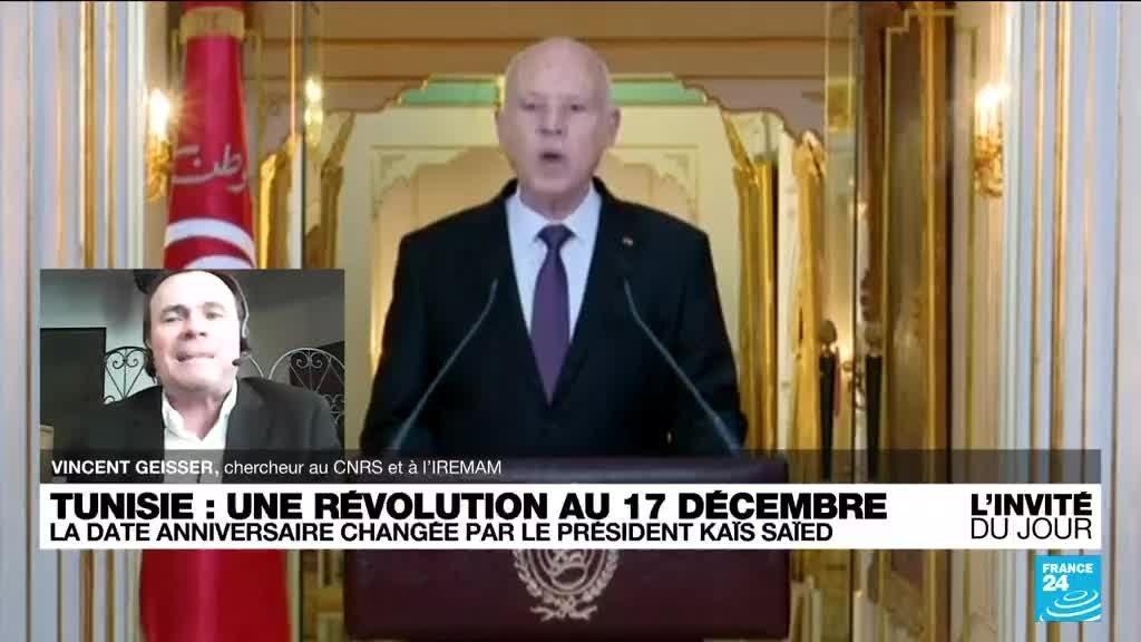 Le président tunisien Kaïs Saïed a décrété en début de mois que le 17 décembre -- qui commémore l'immolation d'un vendeur ambulant il y a 11 ans à Sidi Bouzid (centre-est) -- était un jour férié et le nouvel anniversaire du début de la Révolution de 2011, dont il estime qu'elle a été détournée de ses objectifs. La mort du jeune Mohammed Bouazizi donna le coup d'envoi de grandes manifestations populaires qui aboutirent le 14 janvier 2011 à la chute du régime de Zine El Abidine Ben Ali et au démarrage du Printemps arabe. Selon Vincent Geisser, Politologue et Chercheur au CNRS et à l’IREMAM, "C'est un président qui veut absolument se réclamer de l'élan révolutionnaire ... Et ce qui est plus important pour Kaïs Saïed, c'est plutôt effectivement ce mouvement révolutionnaire plutôt que le changement de régime et le départ de Ben Ali".