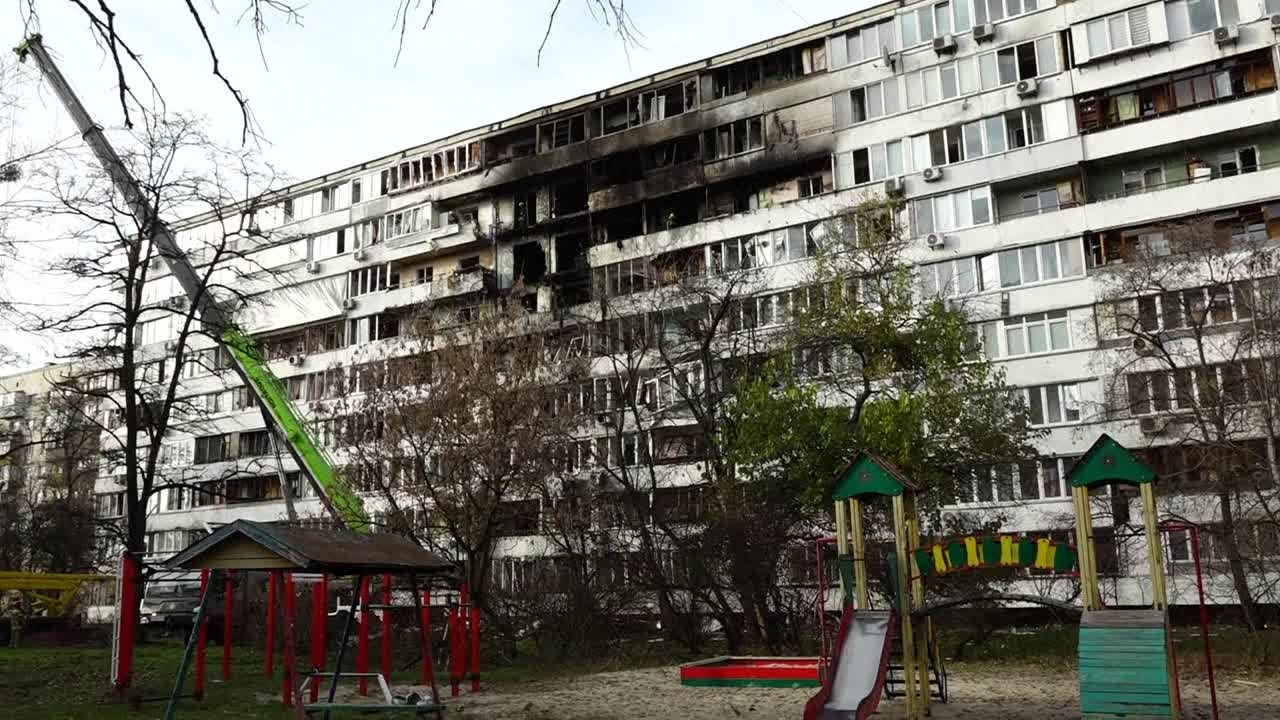 Ukraine : des pompiers nettoient les débris d'un immeuble endommagé par des frappes russes information fournie par AFP Video 25/11/2025 à 11:36