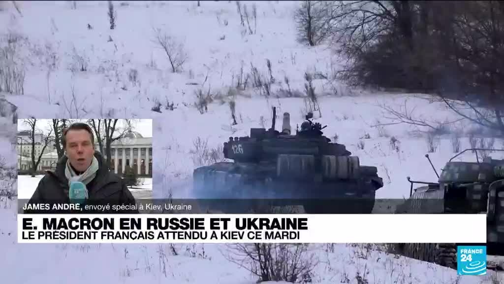Le président français Emmanuel Macron est en route mardi pour Kiev où il doit rencontrer son homologue Volodymyr Zelensky après avoir présenté à Moscou - qui s'est dit prêt à "des compromis"- ses propositions pour désamorcer la crise autour de l'Ukraine. Les précisions de James André, envoyé spécial de France 24 sur place.