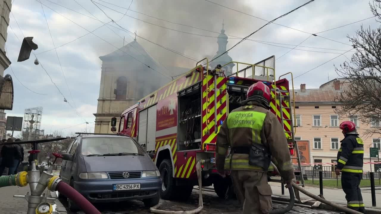 Ukraine: incendie après une frappe de drone en plein centre de Lviv information fournie par AFP Video 25/03/2026 à 08:15