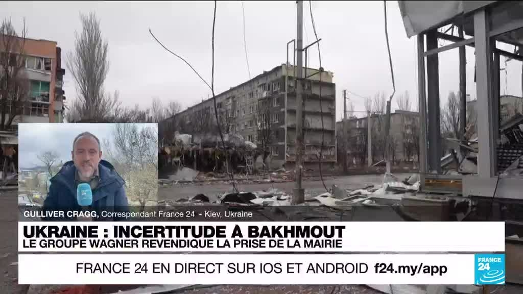 Le groupe paramilitaire russe Wagner a revendiqué lundi 3 avril la prise de la mairie de Bakhmout, affirmant que cette conquête signifiait qu'il contrôlait désormais la ville "au sens légal", l'Ukraine assurant pour sa part qu'elle tenait encore cette localité de l'est du pays où des combats acharnés font rage depuis des mois. Les précisions de Gulliver Cragg, correspondant de France 24 en Ukraine.