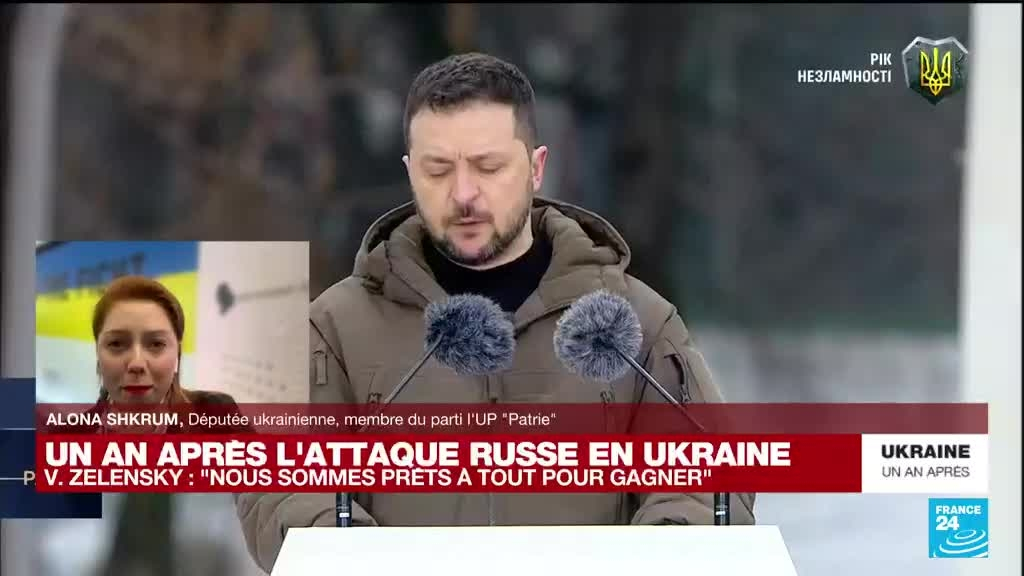 L'Ukraine entre vendredi 24 février dans sa deuxième année de guerre contre les forces russes, marquant le premier anniversaire d'une invasion face à laquelle elle a affiché une résistance acharnée et, aidée des Occidentaux, infligé des revers inattendus à Vladimir Poutine. Alona Shkrum, députée ukrainienne et membre du parti UP" Patrie", était sur France 24 pour évoquer la situation. Elle assure que les Ukrainiens peuvent "gagner cette guerre cette année".
