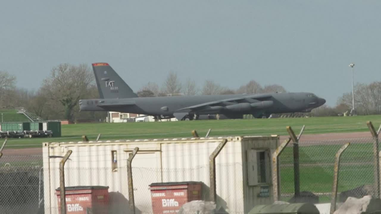 Un C-5M Super Galaxy de l'US Air Force atterrit à la base aérienne britannique de Fairford, dans le sud-ouest de l'Angleterre. Fairford est l'une des deux bases, avec celle de Diego Garcia dans l'océan Indien, que le Royaume-Uni a autorisé les États-Unis à utiliser pour "des opérations défensives spécifiques contre l'Iran" visant à détruire les missiles iraniens à la source, déclare le ministre de la Défense John Healey. IMAGES