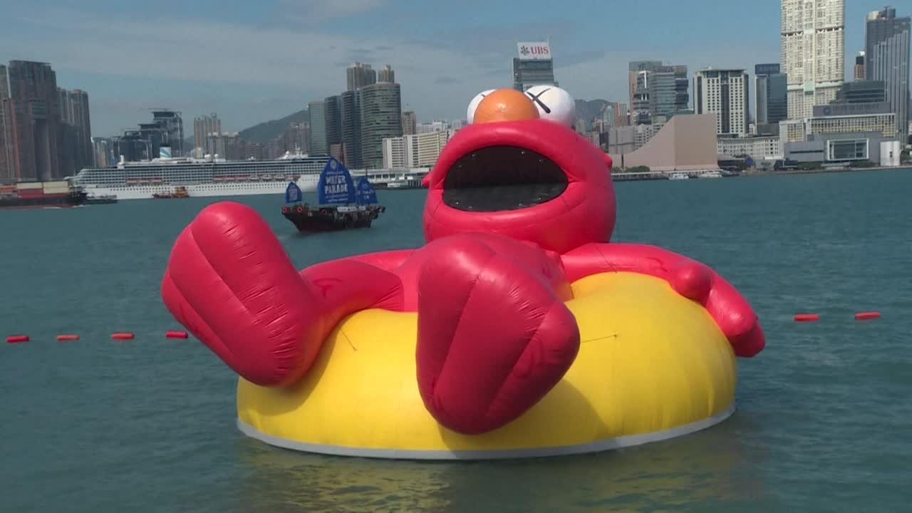 Le public se presse sur le front de mer de la baie de Hong Kong, pour prendre des photos devant des créatures gonflables géantes, dont une à l'image du phénomène chinois Labubu.
