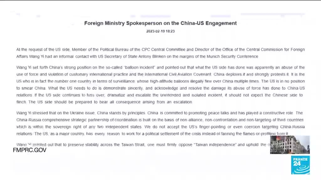 Un soutien logistique chinois à la Russie ? Washington met en garde, Pékin nie information fournie par France 24 20/02/2023 à 11:37