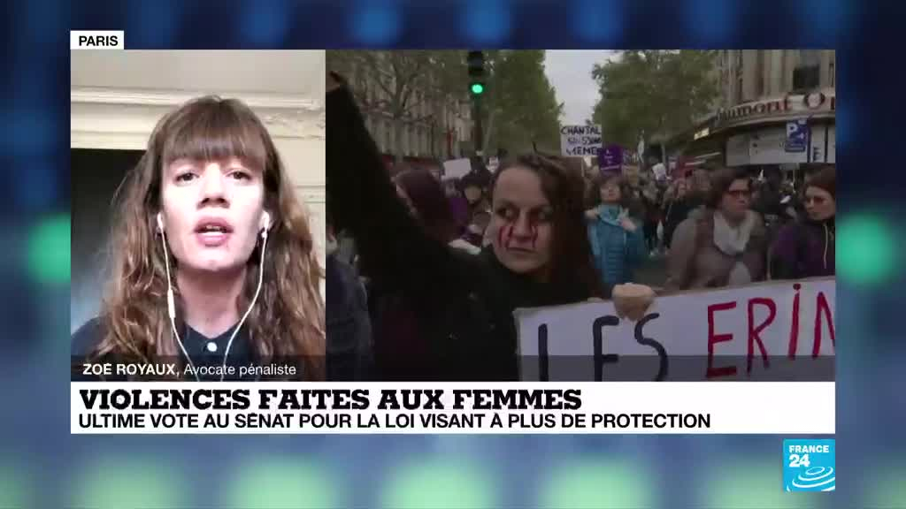 Le Parlement français s'apprête à adopter mardi, par un vote du Sénat, une proposition de loi destinée à mieux "protéger les victimes de violences conjugales". Ce texte constitue le deuxième volet législatif en quelques mois d'un arsenal de lois visant à faire reculer les violences contre les femmes. Pour Zoé Royaux, porte-parole de la Fondation des femmes, il constitue une avancée, mais les moyens financiers alloués à cette lutte n'ont pas été précisés et les mesures déjà votées tardent à être appliquées, alors que le gouvernement avait promis des mesures "immédiates".