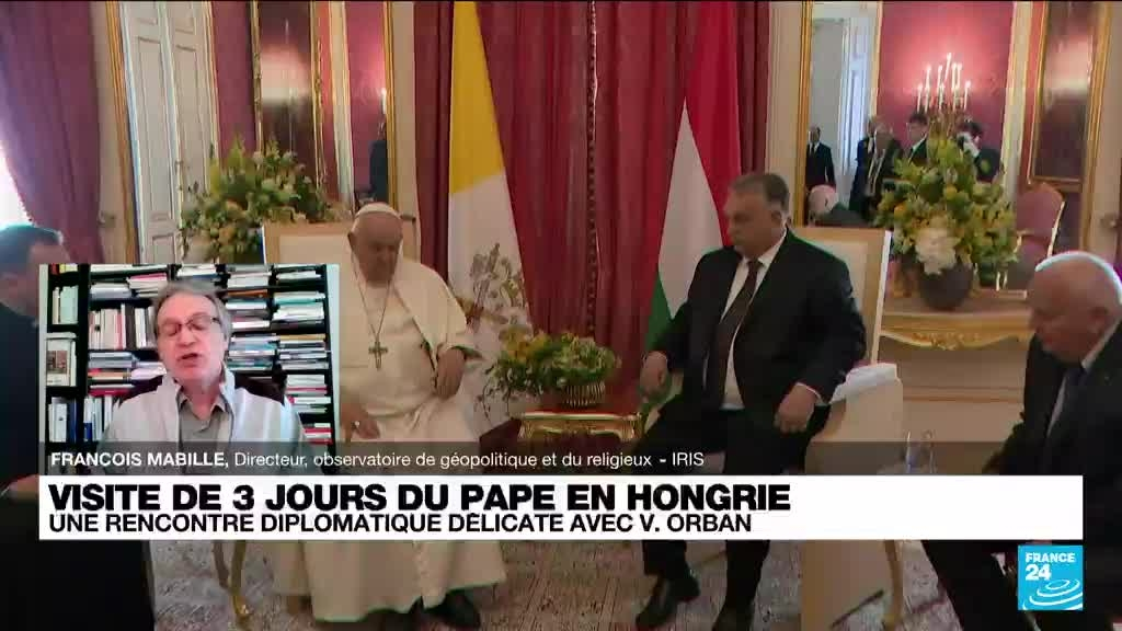 Le pape François est arrivé en Hongrie vendredi 28 avril, où il a débuté un voyage de trois jours au cours duquel la guerre en Ukraine, l'immigration et les racines chrétiennes de l'Europe devraient figurer dans l'ordre du jour de ses discours publics et de ses entretiens avec le Premier ministre hongrois Viktor Orban. François Mabille, directeur de l'observatoire de géopolitique et du religieux et chercheur au CNRS, était sur France 24 pour évoquer ce déplacement.
