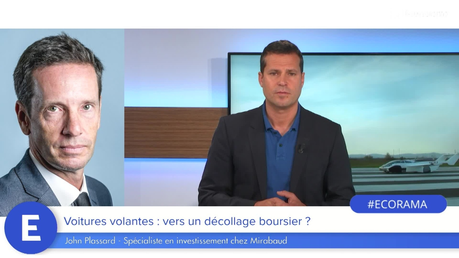 Se déplacer en taxi volant va devenir une réalité d'ici 2025. Comment jouer ce thème d'investissement ? Le point de vue de John Plassard, spécialiste en investissement chez Mirabaud. Ecorama du 16 juillet 2021, présenté par David Jacquot sur Boursorama.com