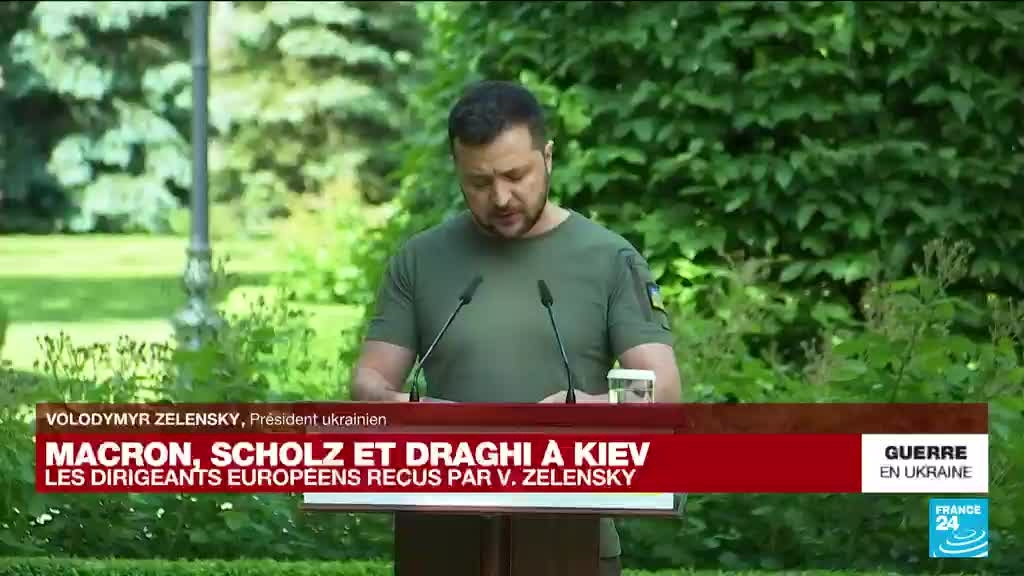 Le président français, Emmanuel Macron, le chancelier allemand, Olaf Scholz, le président du Conseil italien, Mario Draghi et le président roumain, Klaus Iohannis, sont arrivés, jeudi, en Ukraine. Suivez la conférence de presse en direct avec le président ukrainien Volodymyr Zelensky.