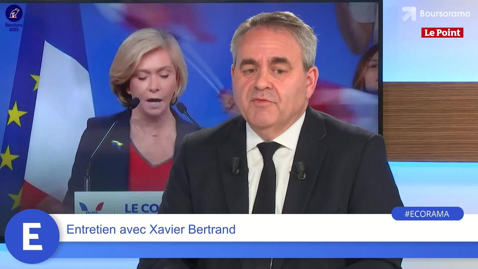 A 4 jours du premier tour de l'élection présidentielle, Xavier Bertrand, président de la région des Hauts-de-France et conseiller spécial de Valérie Pécresse, était l'invité de l'émission Ecorama du 6 avril 2022, présentée par David Jacquot et Marc Vignaud, journaliste au Point, sur Boursorama.com